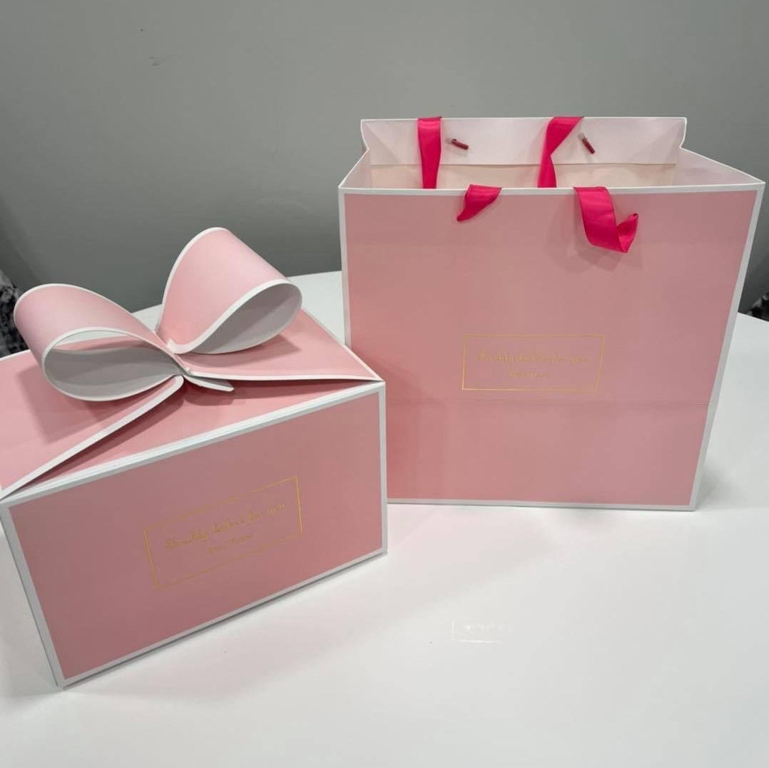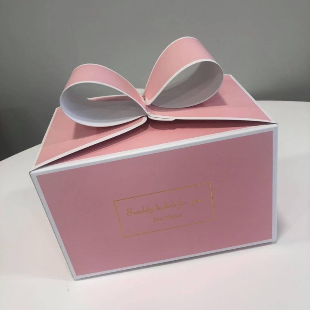 Luxury bespoke deluxe Pink bow box with gold foil wording (freshly baked for you)