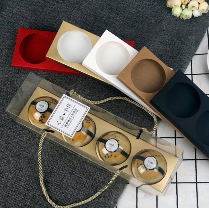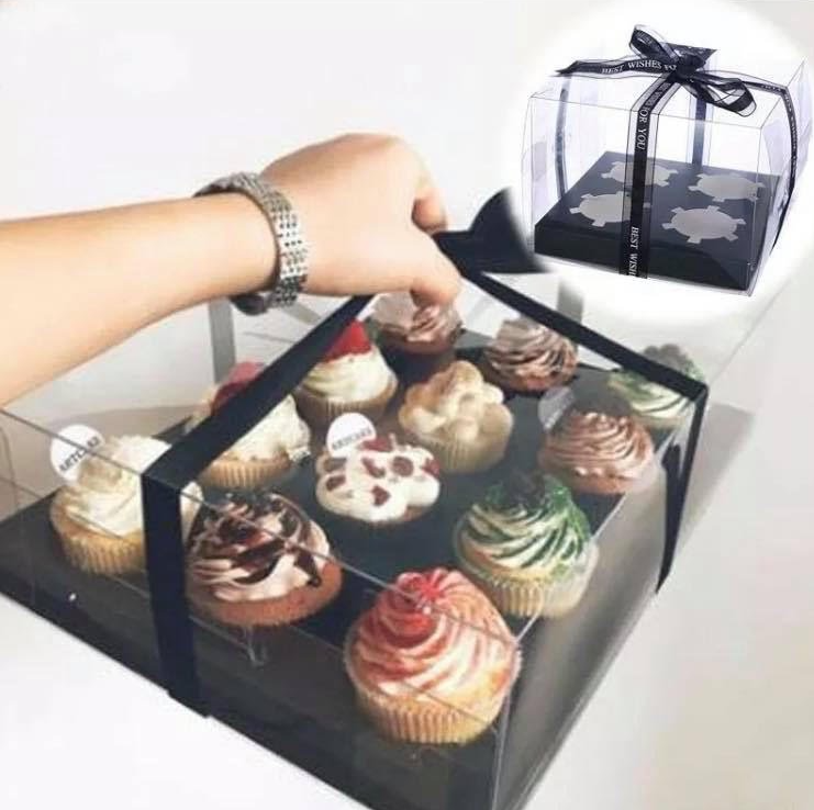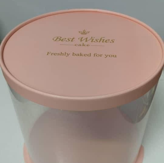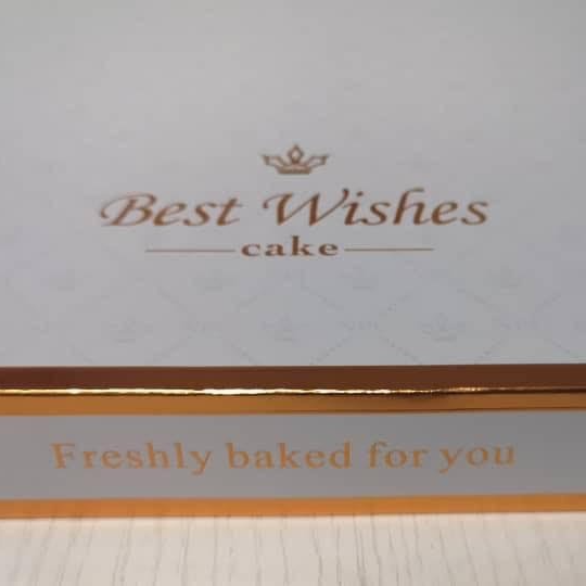 Luxury large square cake box with base board and recyclable plastic sleeve.